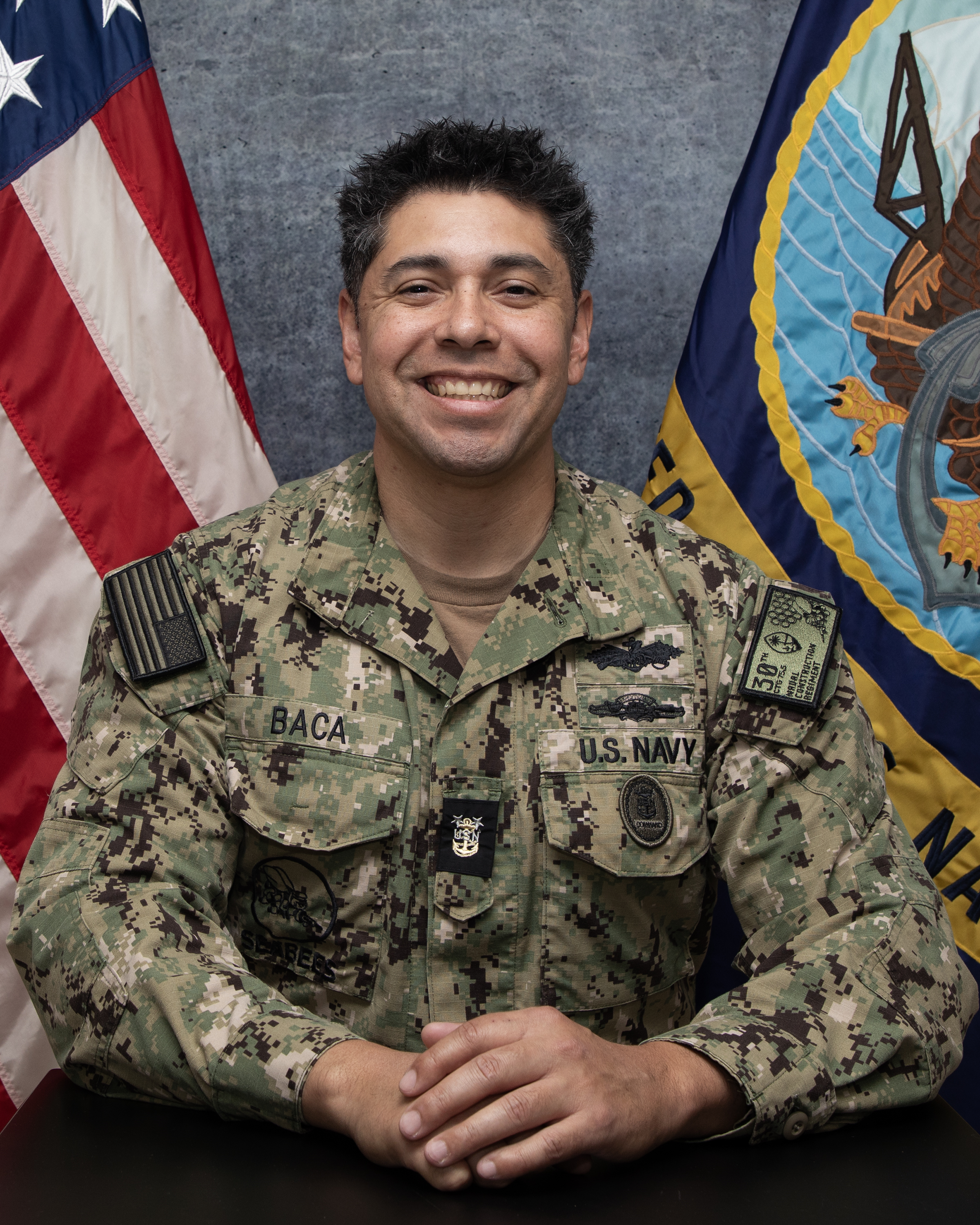 Master Chief Baca has earned an associate’s degree in electrical mechanical technology through Coastline Community College and has earned a bachelor’s degree through Excelsior University. He attended the Senior Enlisted Academy in May of 2019 and is Seabee Combat Warfare and Expeditionary Warfare qualified. His decorations include the Navy and Marine Corps Commendation Medal (3 awards), Navy and Marine Corps Achievement Medal (4 awards), and various unit and campaign awards.